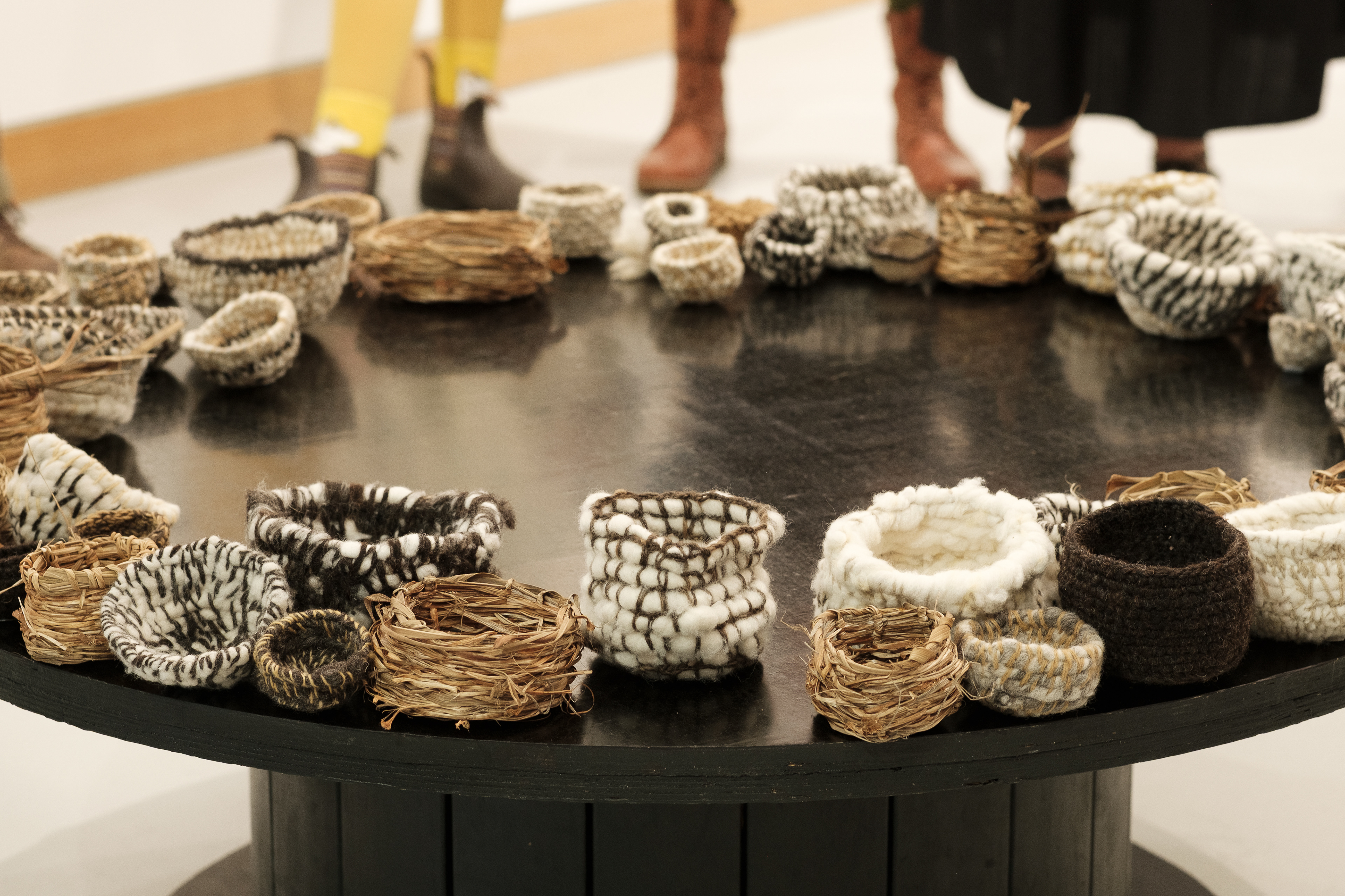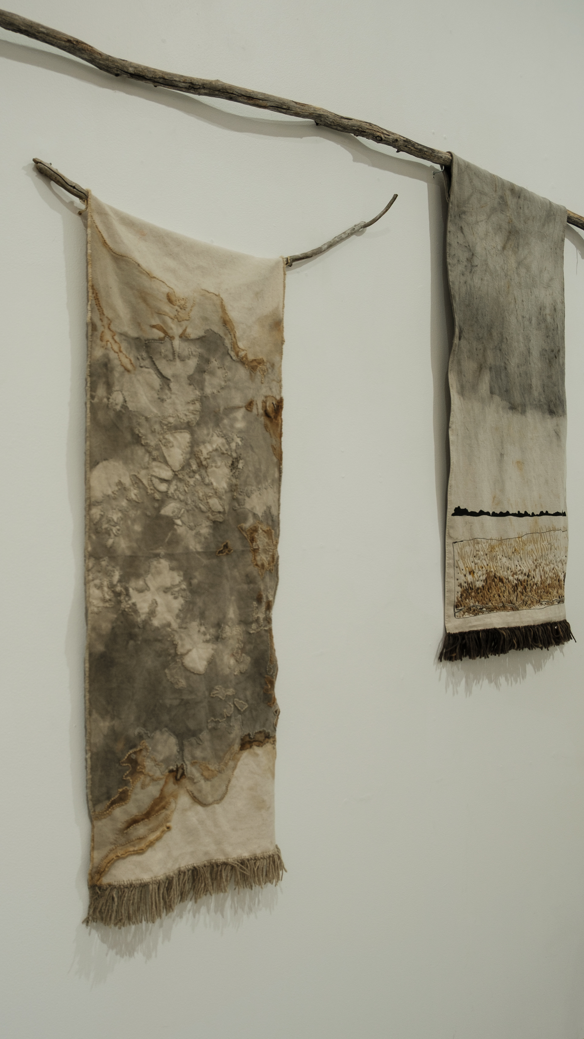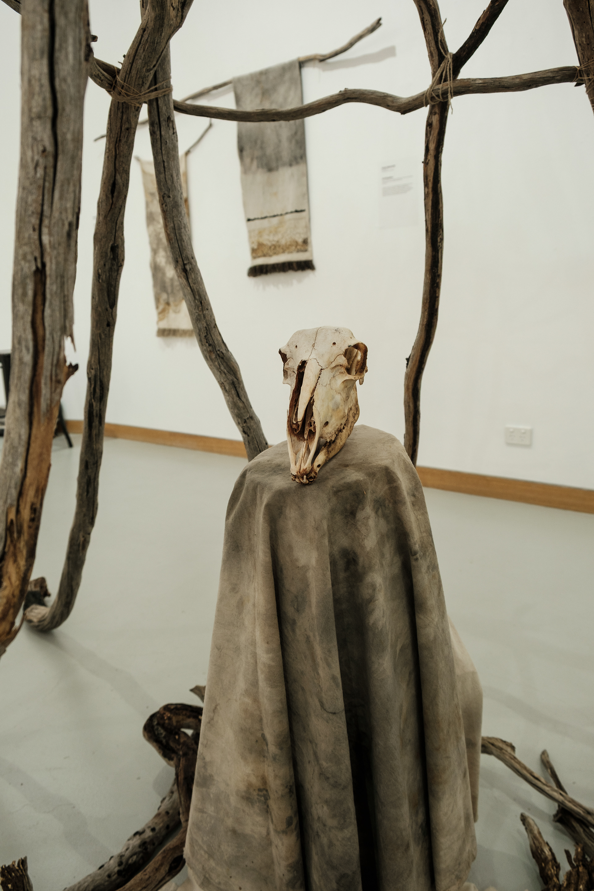 This exhibition is a gathering—of materials, of textures and stories. It is shaped by what surrounds me—wool from local sheep, dye from eucalyptus in my backyard, and the landscape itself.