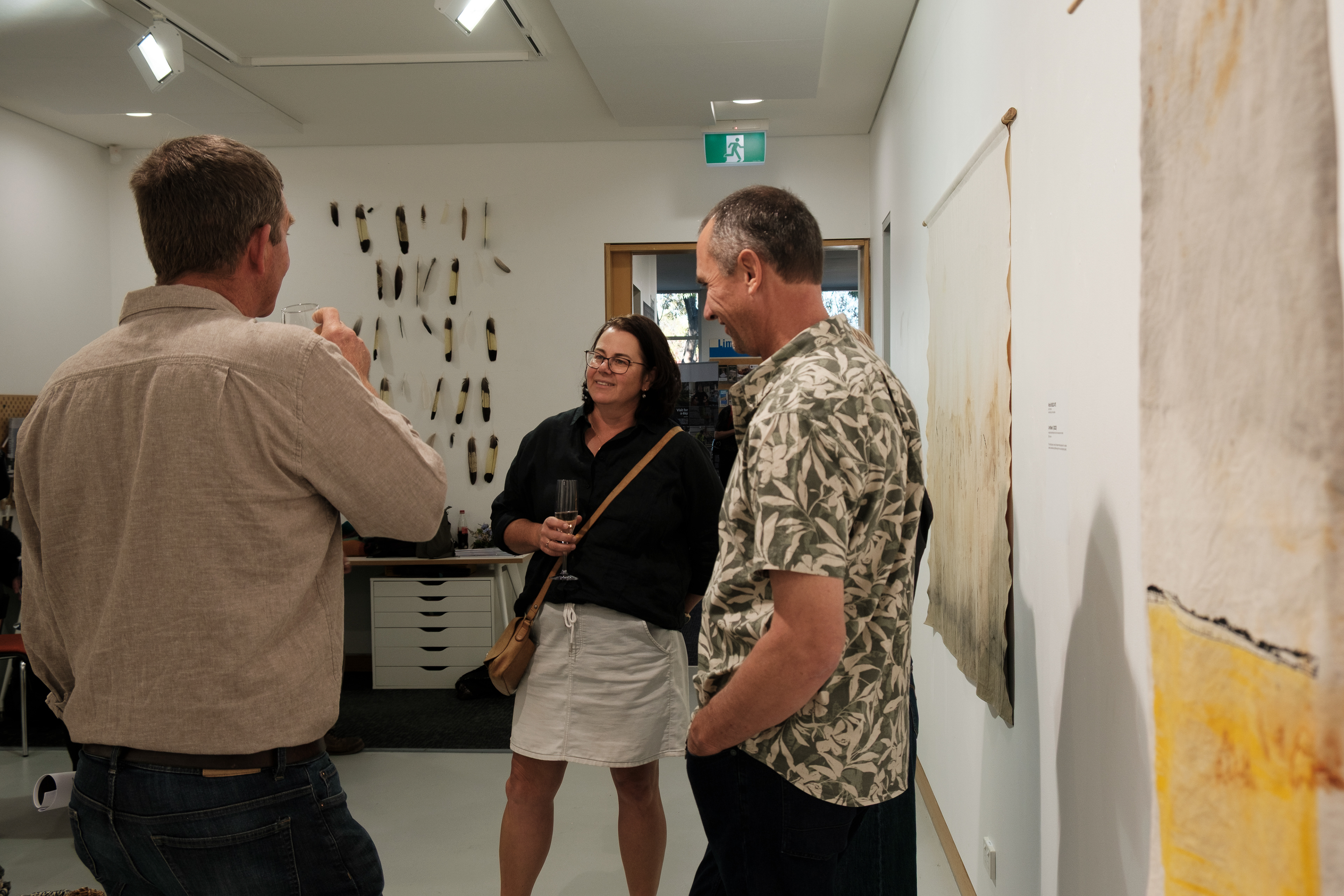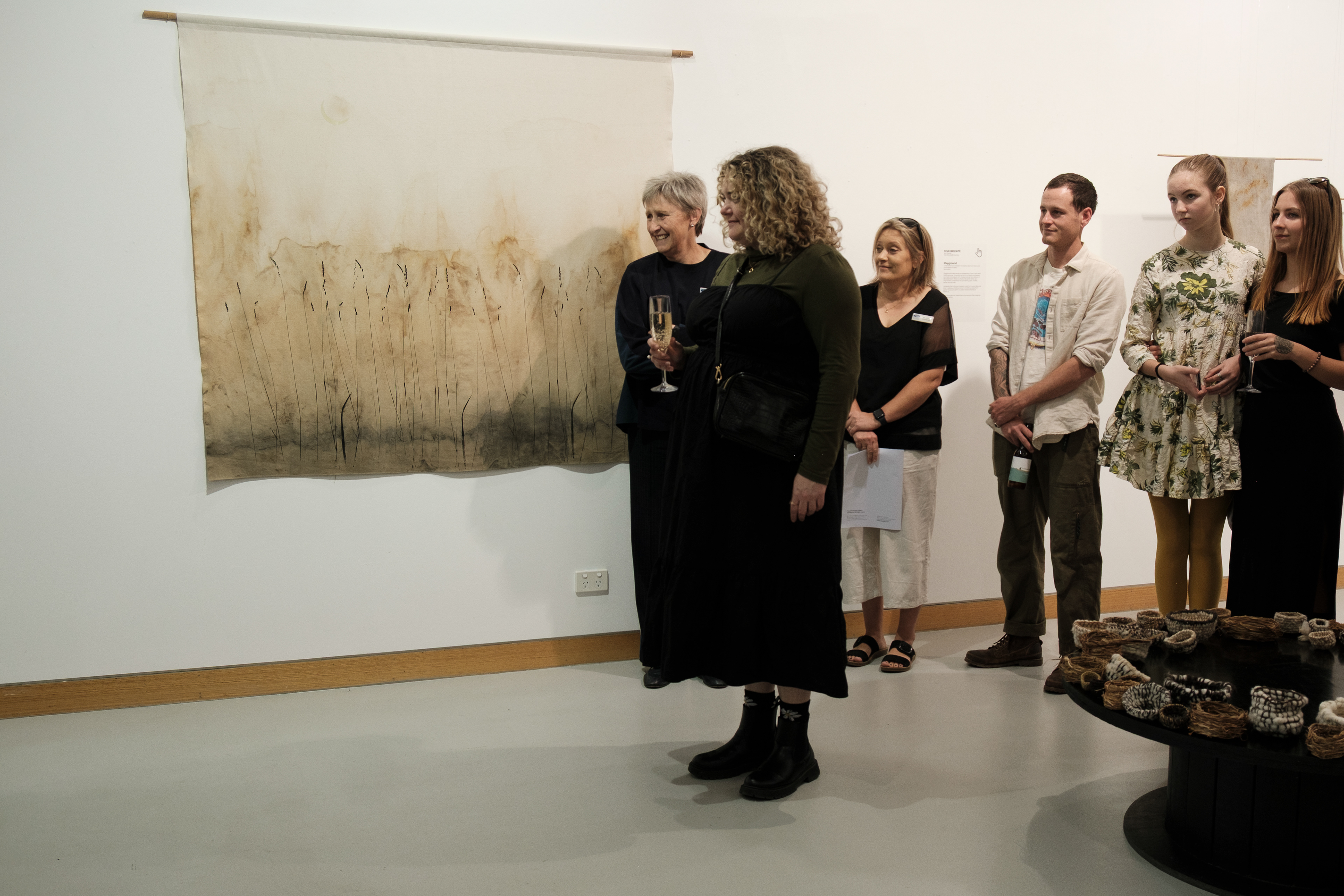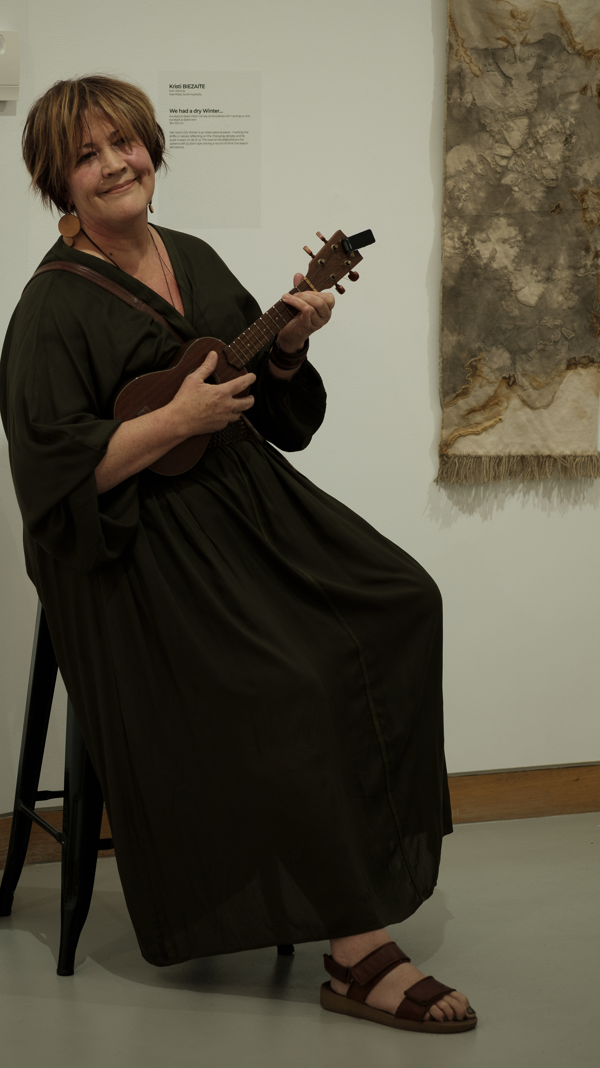 This exhibition is a gathering—of materials, of textures and stories. It is shaped by what surrounds me—wool from local sheep, dye from eucalyptus in my backyard, and the landscape itself.