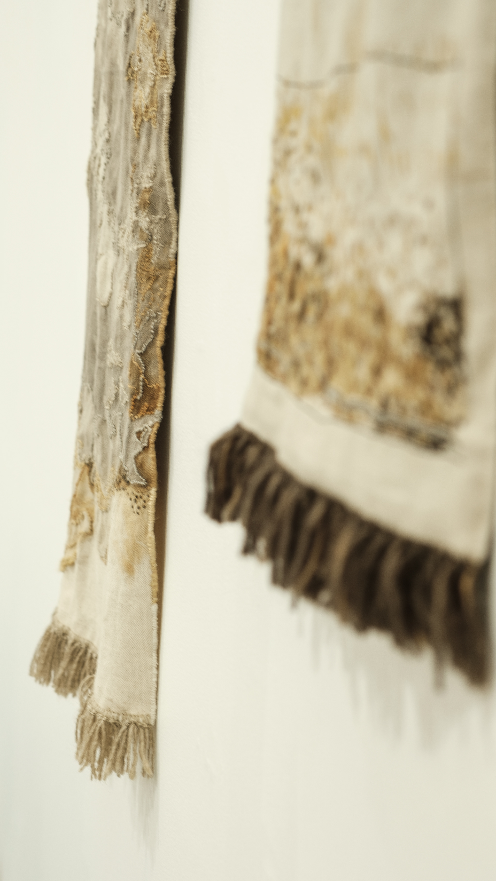 More than an act of seeing, Gathering invites participation. Textiles are inherently tactile, demanding an engagement that goes beyond observation. The works ask to be experienced, not just as objects but as encounters, where the boundary between artist, material, and observer begins to blur.